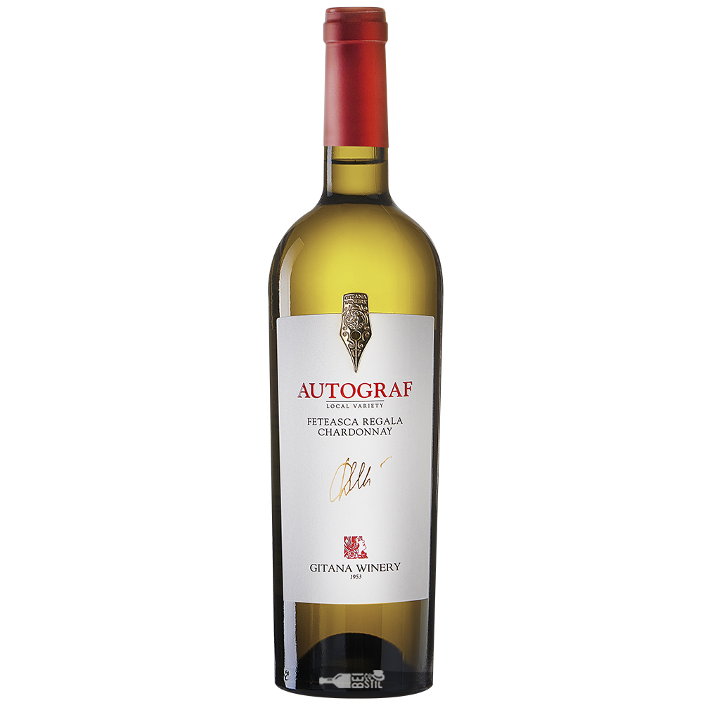 Fetească Regală – Chardonnay de la Autograf reunește eleganța într-un vin alb sec de calitate, din inima regiunii vinicole Valul lui Traian. Culoarea galben-pai atrage privirile, iar aromele intense de caise coapte, piersici, ananas și grapefruit se îmbină armonios cu nuanțele de flori de salcâm și lămâie, subliniate de dulceața mierii. Gustul proaspăt și nobil dezvăluie subtile note de fructe galbene și o adiere fină de vanilie în postgust.