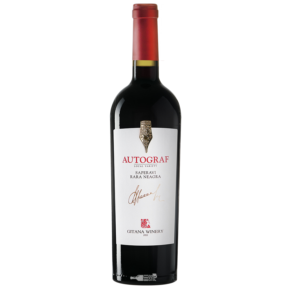 Saperavi-Rara Neagra de la Autograf este un vin roșu sec distins din regiunea vinicolă Valul lui Traian. Cu o culoare rubin adânc și reflexii violete vibrante, oferă un profil aromatic intens și complex, cu arome sălbatice de fructe de pădure precum cireșe, afine și mure, completate de note îmbietoare de condimente. Gustul se bucură de o echilibru armonioasă, evidențiind taninuri blânde, nuanțe de vanilie și ciocolată neagră, într-un final persistent.