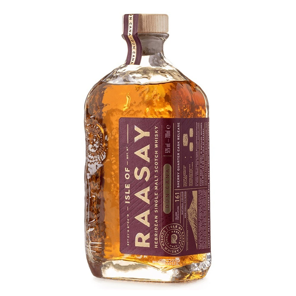 Isle of Raasay Dùn Cana Sherry Cask First Edition este un whisky de excepție, născut în inima insulei Raasay și inspirat de măreția vulcanică a muntelui Dùn Cana. Maturat în butoaie de secară americană și finisat în Sherry Oloroso și Pedro Ximénez, dezvăluie un profil aromatic profund și echilibrat. Mirosul elegant îmbină piperul alb, condimentele dulci, stafidele și nucile prăjite. Gustul complex oferă valuri de ciocolată neagră sărată, fructe uscate și un fum subtil care persistă armonios. Finishul lung și catifelat lasă o amprentă rafinată de ciocolată amară și lemn afumat. Servit simplu sau cu câteva picături de apă, își dezvăluie toate nuanțele. Un whisky cu identitate hebridiană, ce reflectă perfect echilibrul dintre natură, tradiție și inovație – o alegere inspirată pentru colecționari și iubitorii de distilate autentice.