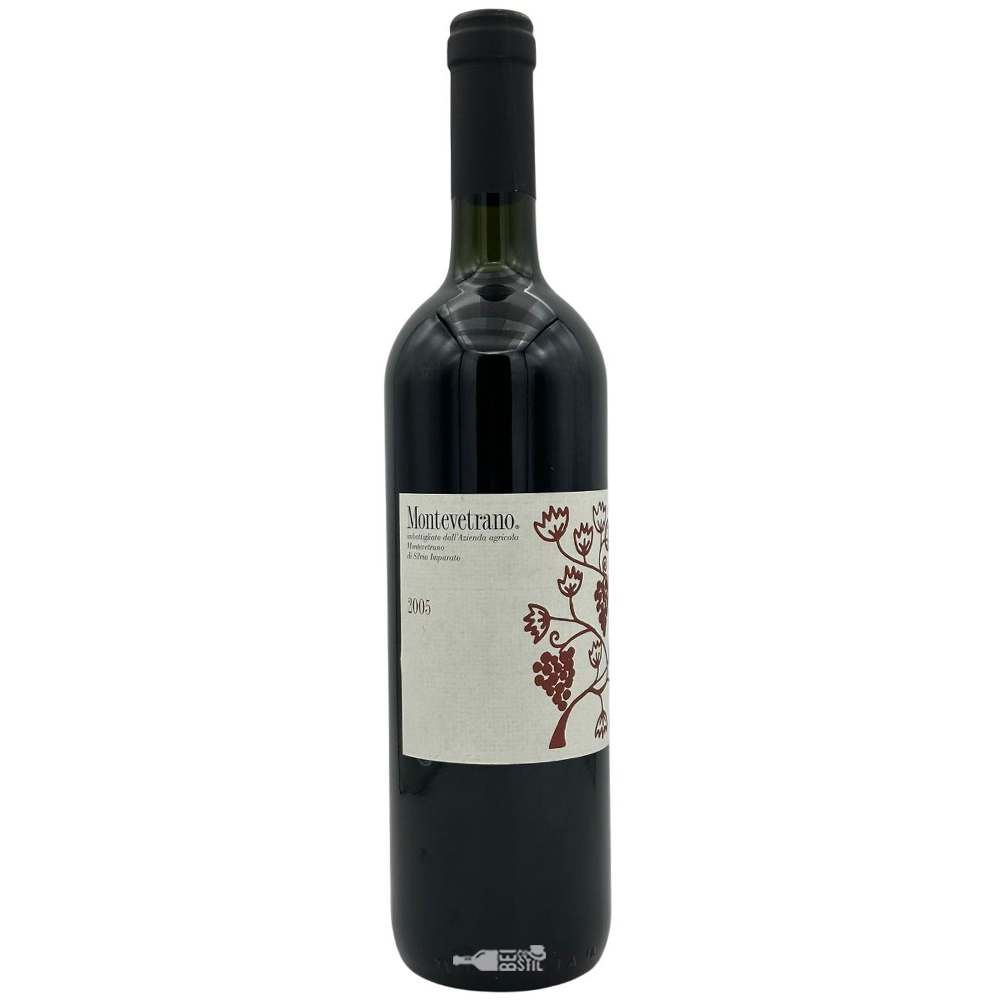 Montevetrano Montevetrano 2005 Colli di Salerno Rosso IGT este unul dintre cele mai reprezentative vinuri rosii ale regiunii Campania, realizat dintr-un cupaj de Cabernet Sauvignon, Merlot si Aglianico. Creat de Silvia Imparato impreuna cu enologul Riccardo Cotarella, vinul provine din podgoriile situate in San Cipriano Picentino, aproape de Salerno, unde influenta marii si protectia Muntilor Picentini creeaza conditii ideale pentru maturarea strugurilor.