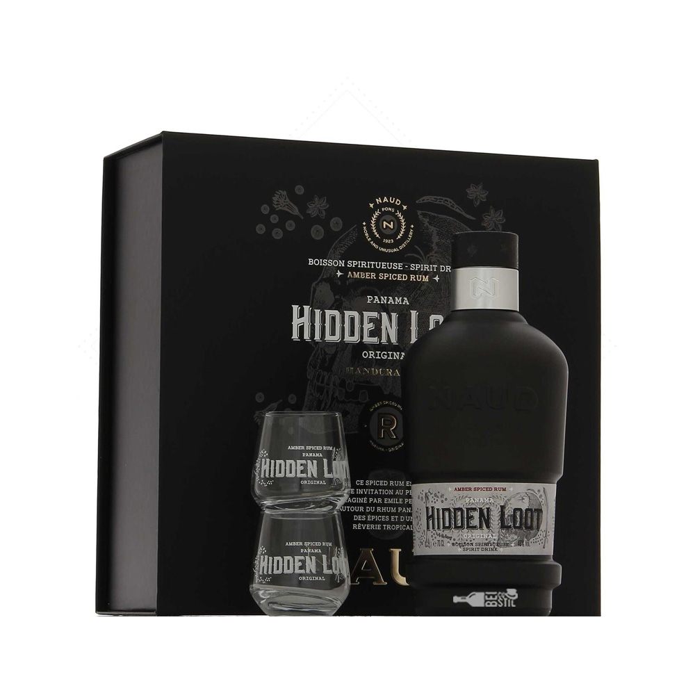 Naud Hidden Loot Amber Spiced Rum cu 2 pahare, este o expresie captivantă, creată din cea mai bună melasă panameză. Maturat timp de 3 ani în butoaie de bourbon din stejar alb american, acest rom condimentat își poartă moștenirea din inima Caraibelor până pe malurile Atlanticului.