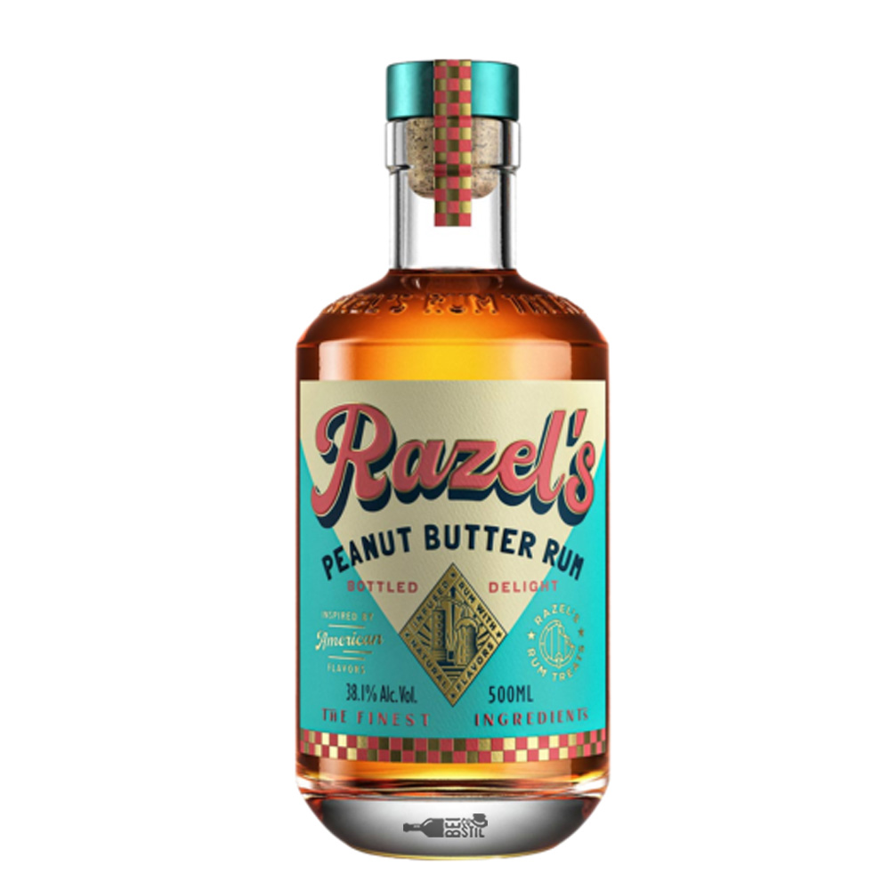 Razel Peanut Butter Rum este un rom aromat cu unt de arahide, obținut prin infuzarea cu ingrediente naturale pentru un gust autentic și intens. Are 35% alcool și un profil dulce și cremos, cu note de caramel, vanilie și un gust bogat de arahide. Poate fi savurat simplu, cu gheață, folosit în cocktailuri sau chiar în deserturi, unde adaugă o aromă distinctă și plăcută.